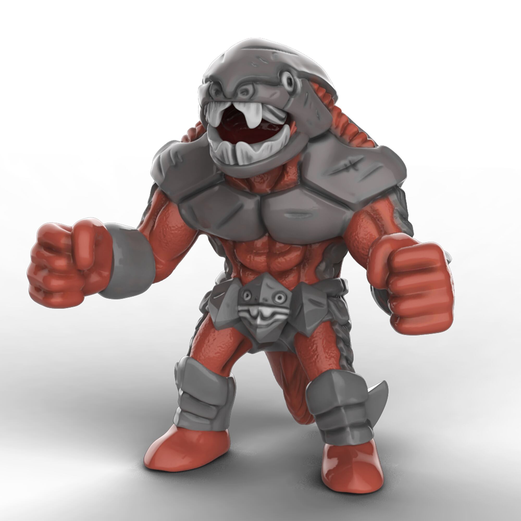 顔から体は鎧でおおわれていて、噛みつくのが得意な超人。